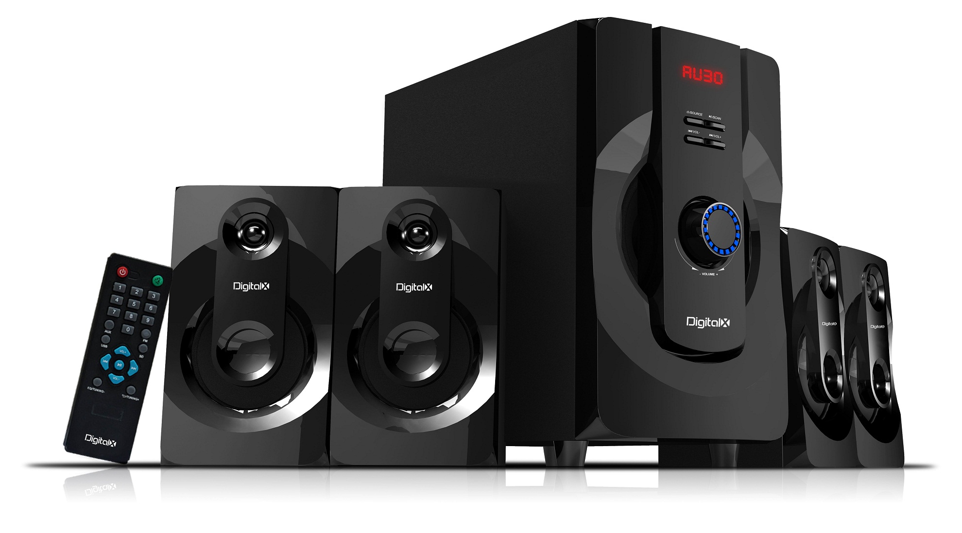 DIGITALX X-F888BT 4.1CH  surround sound system speakers sound systems comes with 4 high resolution satellite speakers which is built with 4 powerful speakers for loud and extended sound quality and 1 powerful woofer for authentic and precise sound. It gives you the performance to experience more realistic and more immersive sound.