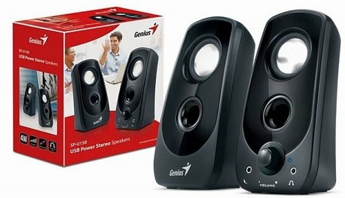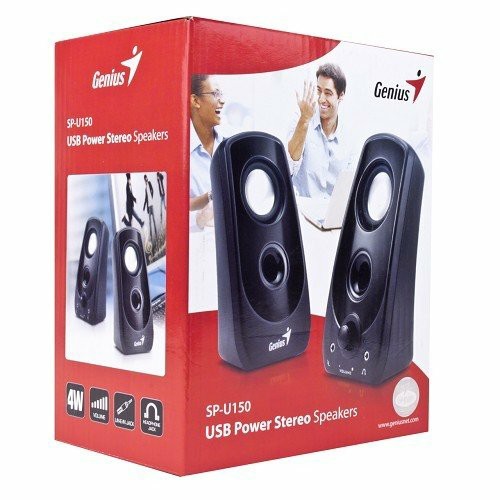 Genius introduces you to another great speaker set, SP-U150, whose power is supplied through a USB port from a PC/notebook. With a big 52mm speaker driver, SP-U150 brings you amazing balance and loud sound in a total of 4 watt output. Just insert the USB plug and 3.5mm audio plug to a PC/notebook to hear your favorite music. SP-U150 has an extra line-in on the front panel so you can connect to a second music source, like a CD/MP3 player or cell phone. Use the headphone jack for private listening. The piano black finish is always suitable for your PC. For more information about SP-U150, contact your local sales representative.